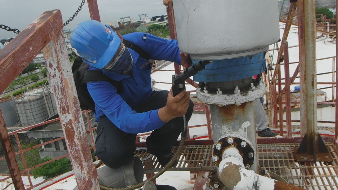 揮發性有機物為在大氣中,沸點在攝氏二百五十度以下有機化合物之空氣污染物總稱,包含苯、甲苯、氯乙烯等,其能與大氣中的其他空氣污染物如氮氧化物,反應形成臭氧。部分揮發性有機化合物並有可能危害人體健康。高雄市環保局針對工廠之揮發性有機物洩漏,首先使用紅外線氣體顯像測漏儀(FLIR) 進行大範圍掃描,透過設備紅外線雷色光穿透逸散物質後訊號的變化,找出肉眼看不到的揮發性有機物氣體,再運用火焰離子化偵測器(FID)檢測洩漏之揮發性有機物濃度,確認有無超過本市設備元件加嚴排放標準(2000ppm)。本次專案共執行10家工廠設備元件檢測,發現林園工業區聯○化工、台灣○烯及台○化林園廠有設備元件洩漏情形,其中有台○化林園廠因發現5處洩漏,將從重處分135萬元。
