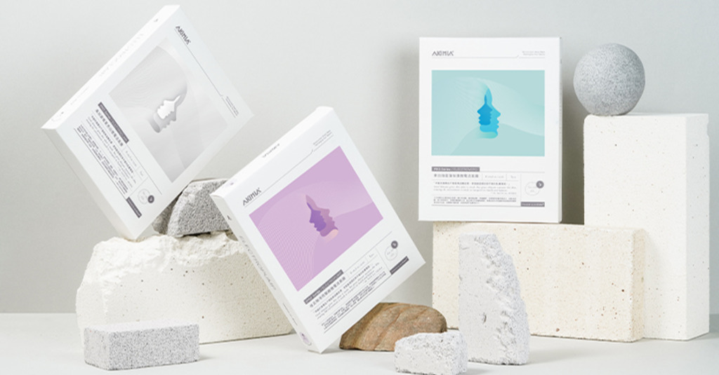 AKIMIA微電流面膜,跟一般面膜不同地方在於,我們採乾溼分離包裝,當消費者撕開兩側提把,讓精華液流到乾面膜上,就會直接產生微電流。