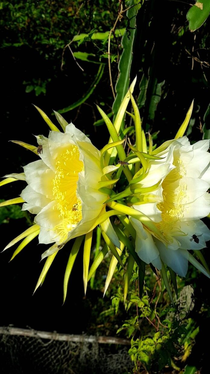 「貼壁蓮」的學名為三角柱仙人掌,適合生存於土質較為乾燥的海岸環境,且能生長快速與耐乾旱等特性,是東北角沿岸常見的濱海植物。三角柱仙人掌外觀呈現綠色、長條形有尖刺是它的莖,它的花瓣會在夏秋之際的夜晚緩緩綻開,花色如白蓮花,花朵可食用。