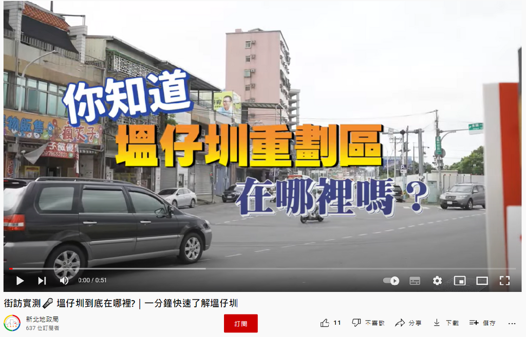 地政局指出,《塭仔圳到底在哪裡?》實測短片以50秒的時間,利用輔大、台65線、縣民大道、新莊好市多、機捷泰山站等知名地標或道路,再加上動態地圖呈現,清楚解析塭仔圳的地理位置,短片已於地政局的YouTube頻道上架https://www.youtube.com/watch?v=PNQobxjqWM8,歡迎民眾點擊觀看。