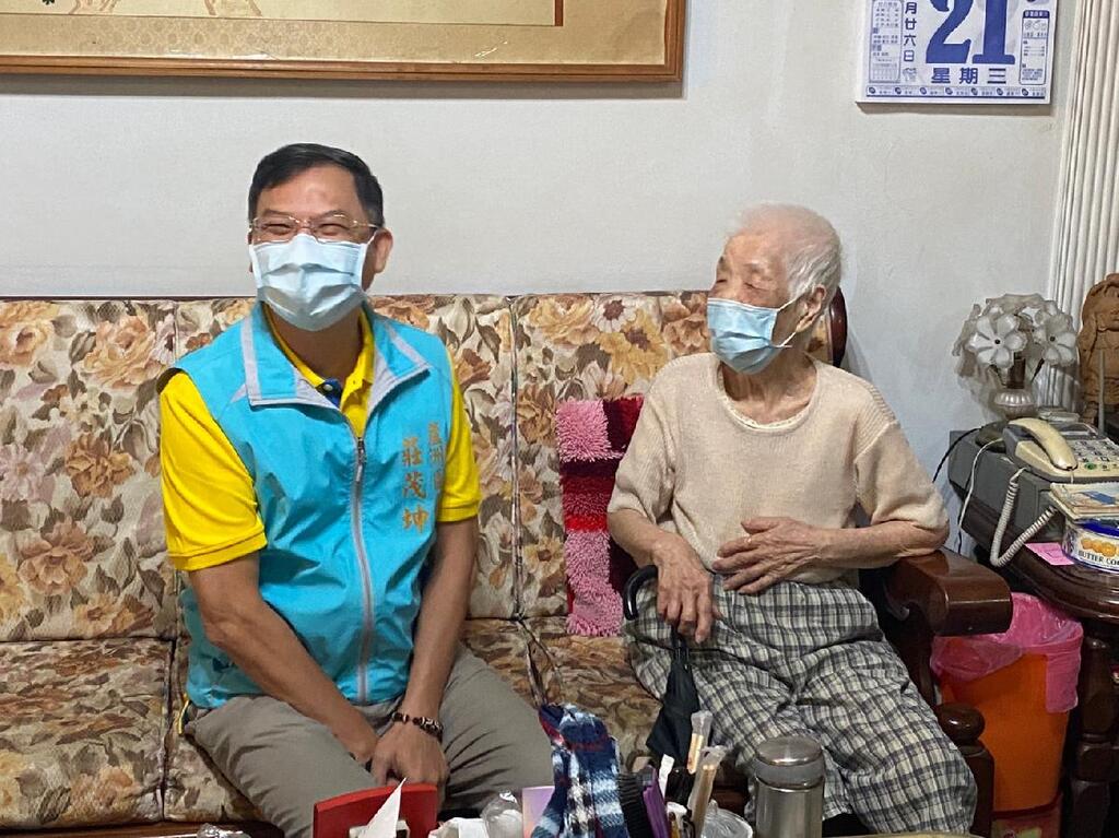 【新北市特訊】新北市蘆洲區公所為照護轄內獨居長者並培養替代役役男孝親尊長、敬老尊賢的觀念,於111年9月21日由區長莊茂坤親自率隊,帶領替代役役男,走入社區鄰里,關懷生活自理困難之長者,並致贈物資慰問長者並祝重陽佳節愉快。