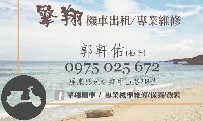 小琉球租車推薦『小琉球擎翔租車』,為小琉球最知名租車公司,深受國內外遊客們的信賴與喜愛,秉持以「專業誠信!價格透明!」經營理念,於業界累積優質好口碑,小琉球租機車首選『小琉球擎翔租車』,除出租機車外,貼心提供旅遊套裝行程、機車保養/維修等服務,『小琉球擎翔租車』致力提供最優質的交通工具!讓遊客到小琉球自由行時,交通問題無虞。