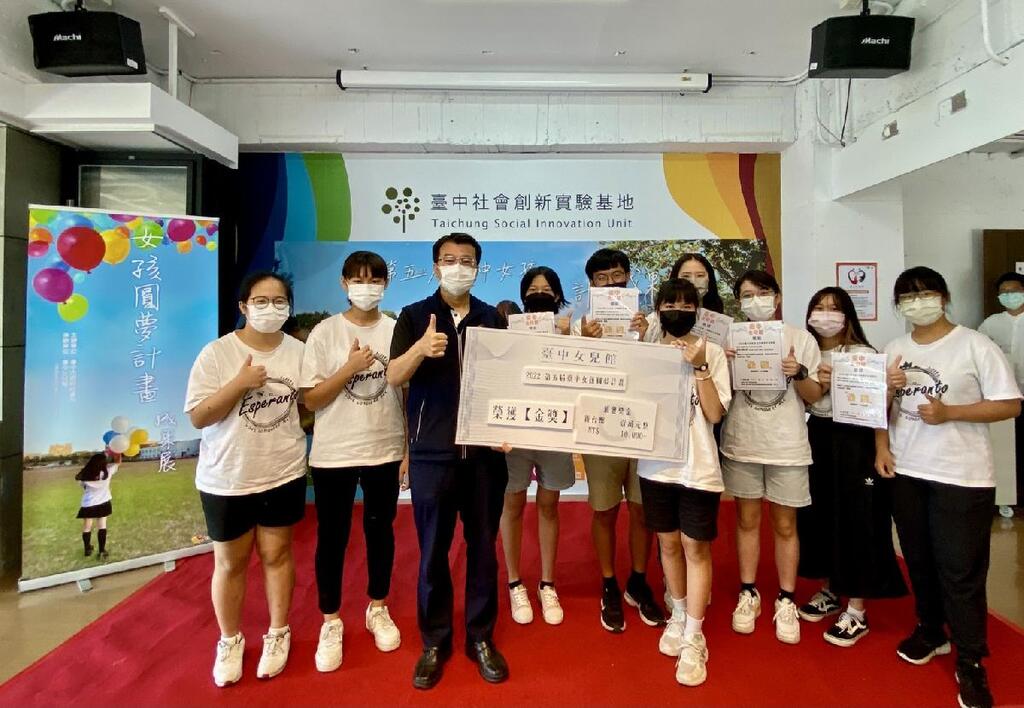 台中市第一座專屬女孩們的培力與交流場所「台中女兒館」今年成立七週年,10月起將舉辦「第五屆台中女孩 圓夢計畫成果展」,由台中市1523歲高中及大專院校女孩團隊合作,提出「推動性別平權」與「實踐公益行動」圓夢方案,共17組青少女提案,台中市政府社會局今(25)日由副局長陳仲良表揚表現優異的8組圓夢團隊,期待社會大眾響應支持女孩們,並鼓勵年輕人發展自我、實踐夢想,打造性別友善城市。