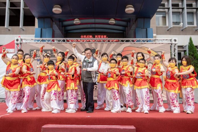 桃園市長鄭文燦今(25)日下午前往觀音區公所,出席2022觀音區藝文活動「藝響觀音(三)」活動時表示,「藝響觀音」系列活動已邁入第3年,以「戰鼓」課程為主,其它傳統民俗技藝類型為輔,而觀音區公所自109年開辦迄今,已培育170名戰鼓學員、65名醒獅技藝、舞龍及官將首等傳藝課程學員,且每年皆獲得95%以上的學員回饋希望持續辦理鼓藝相關課程,觀音區大潭國小、育仁國小、新坡國小、上大國小、樹林國小、觀音國小等校亦有成立鼓藝相關社團,期盼未來持續傳承傳統技藝,讓活動逐漸發展為觀音特色。