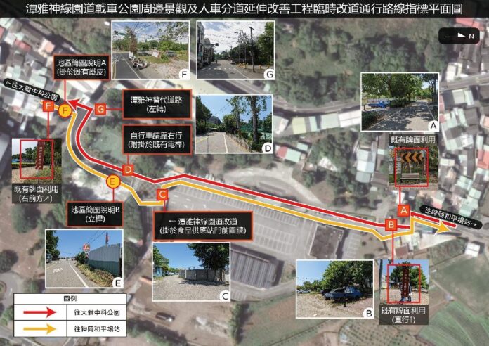 潭雅神戰車公園位於潭雅神綠園道11K+500處,目前既有人車動線欠佳、設施老舊、排水性差、景觀視覺凌亂,台中市政府透過空間、動線、景觀、設施檢討公園整體規劃,進行全面改造及優化。觀旅局表示,此工程昨(26)日起封閉施工,預計明年4月底完工,施工期間將設置牌面引導民眾行走替代道路,呼籲遊客小心通行。