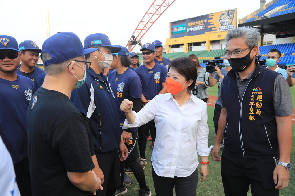 2022爆米花棒球聯盟賽11月將開打,台中城市棒球隊積極備戰,日前與U23棒球國家隊於洲際棒球場進行熱身交流賽,市長盧秀燕在運動局長李昱叡陪同下到球場向全體隊職員及教練團致意,為球隊組訓與參賽加油打氣並致贈水果禮盒,祝福球隊強棒出擊、勇奪佳績!