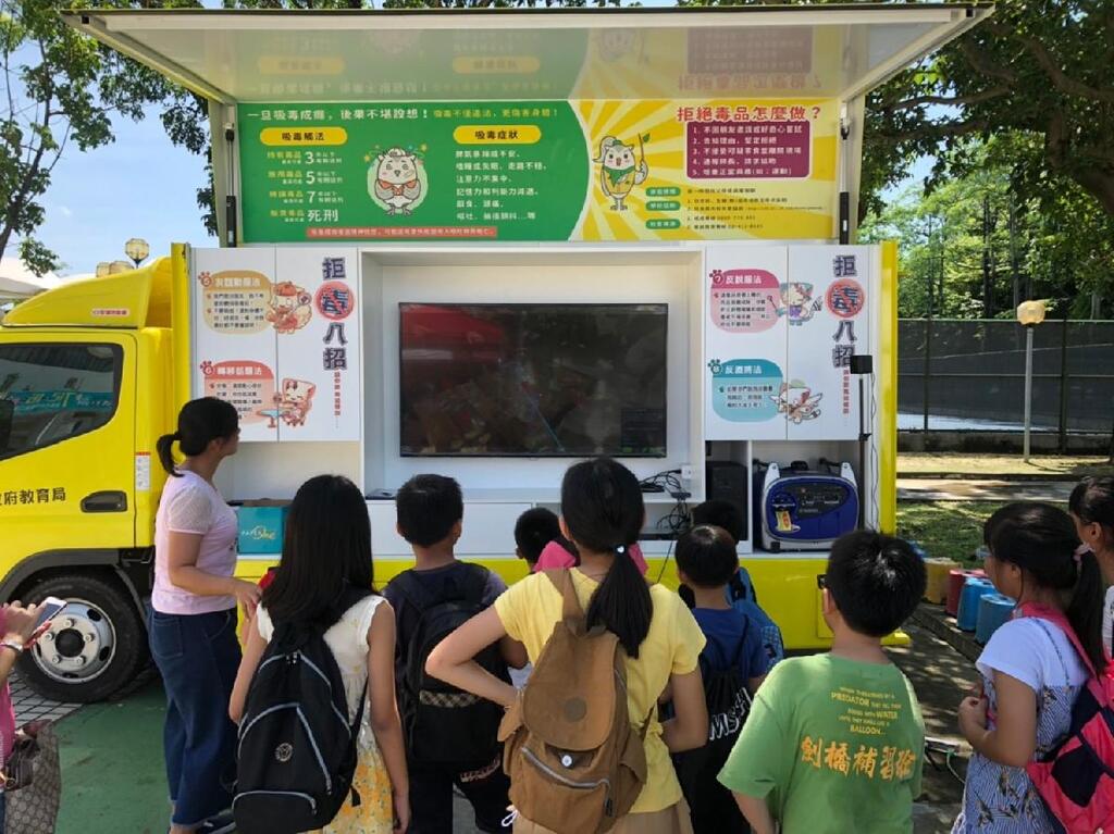 為落實反毒扎根教育並強化宣導量能,以提升各級學校師生識毒及拒毒知能,教育部國民及學前教育署補助臺中市政府、彰化縣政府及高雄市政府教育局(處)推動移動式反毒教育計畫,並與民間團體合作共同打造「反毒教育行動車」,除了車體設計貼近學童的各項識毒文宣,並搭載融入式桌遊、教具、繪本、擬真毒品樣態盒及互動式反毒體感遊戲,把「反毒」與「行動」、「科技」相結合,巡迴各級學校進行校園宣導,以落實反毒教育成效,達成健康無毒校園目標。