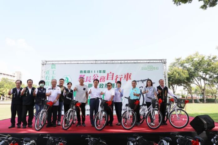 嘉義縣政府111年鄰長公務自行車聯合致贈儀式28日上午舉行,第一批自行車300輛於縣府前草地廣場一字排開,場面壯觀,要提供給鄰長服務村里民及作為平時執行公務時使用,藉此提供服務效能,並同時提倡環保嘉園、綠能我嘉等低碳生活。