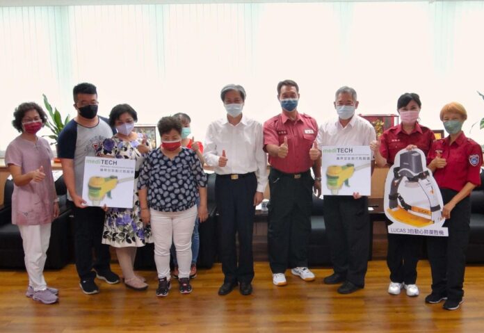 去(110)年12月,陳先生因病逝世,洪省女士感念先生曾經多次提及「在Covid-19疫情緊張之際,常可看見消防人員穿著全套防護衣,駕駛救護車穿梭於鎮內執行緊急救護工作,實在辛勞」,是以安排救護器材捐贈事宜,本次受贈之LUCAS自動心肺復甦機及自動給氧機,將直接配置於北港消防分隊,期能提升本縣到院前心肺功能停止(OHCA)患者的存活率,保障縣民生命財產安全。