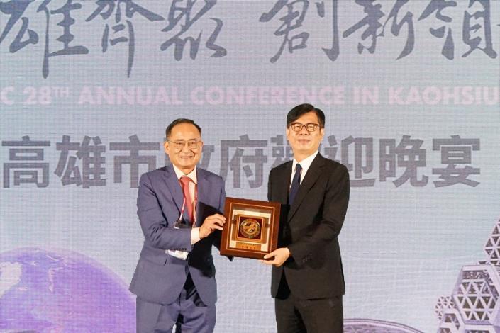 陳其邁致詞時表示,高雄可說是台灣代表城市之一,有寬闊山海河港、熱情市民,感謝台商朋友一方面打拚、一方面為台灣外交努力,將台灣軟實力擴展到世界各地,今天盡地主之誼來感謝大家。高雄已準備好面對全球化的競爭,不僅擁有全台最完善的海陸空交通港埠,更透過捷運和輕軌系統持續擴大腹地連結,配合中央大南方計畫,成功招募台積電、鴻海、英特格、默克等大廠落地,兩年招商投資金額超過5千億元,加速開闢橋科、仁武、楠梓及亞灣4大園區,往北串連南科形成南部半導體S科技廊道,帶動高雄整體產業結構轉型,歡迎台商朋友前來高雄走走,高雄是台商返台投資的絕佳選擇。並再一次感謝與歡迎前國務卿龐培歐、前副國安顧問葉望輝,見證台美間深厚友誼。
