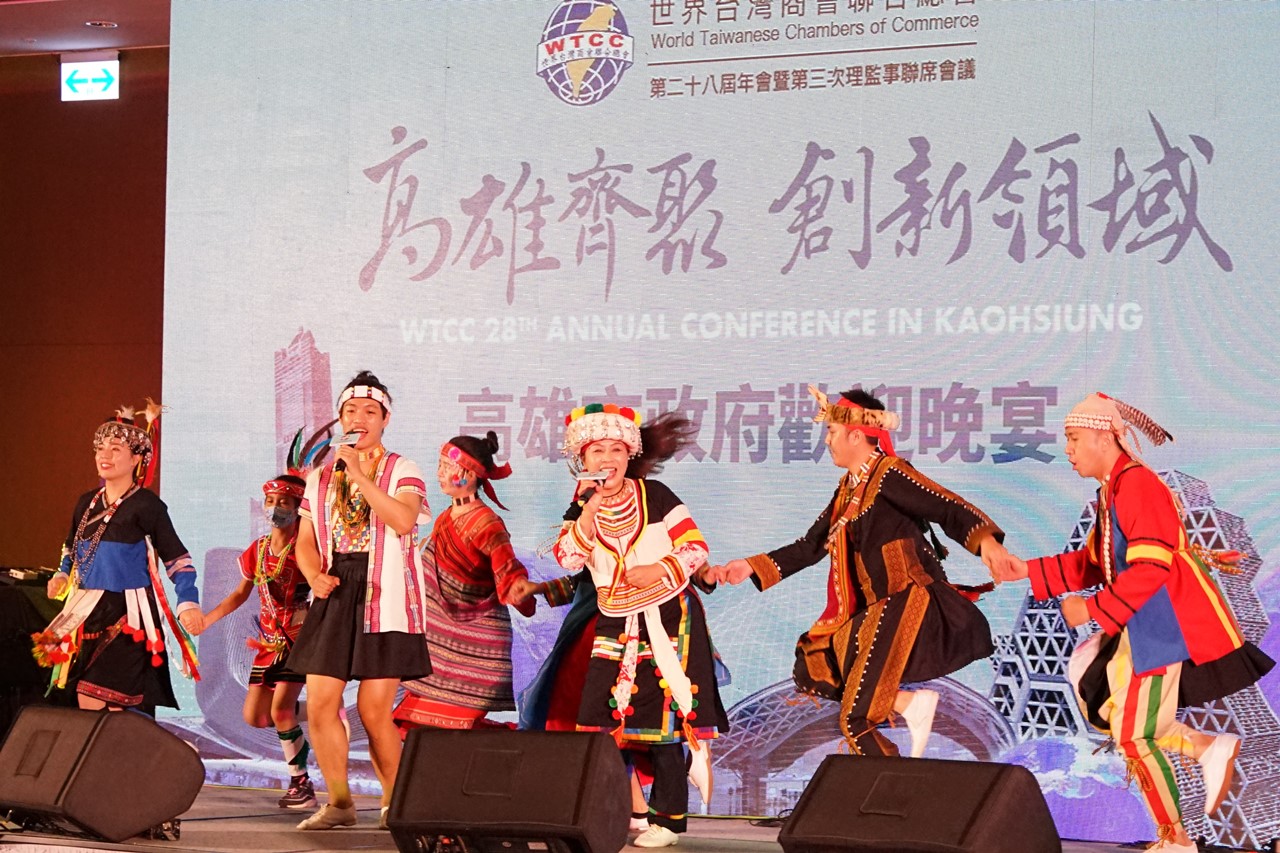 經發局長廖泰翔表示,今天晚宴邀請高雄多元文化及原民特色樂團演出,提供與會貴賓視聽與味覺的多重饗宴,年會結束後也特別安排城市之旅,參訪衛武營國家藝術文化中心、高雄流行音樂中心、亞洲新灣區等重要經濟文化建設,期待透過本屆世總年會將高雄的城市會展品牌行銷到全球,吸引更多企業投資及會展活動落地。