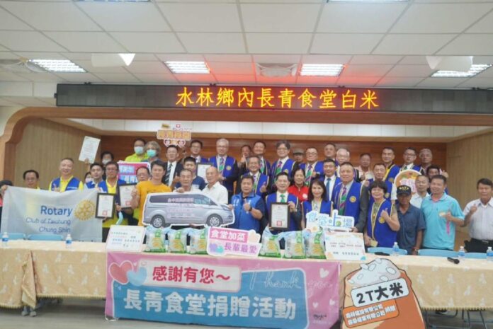 中部新聞雲林縣台中東興扶輪社、台中中興扶輪社、雲林崙背扶輪社、鼎秝建設有限公司、鼎燊健業有限公司聯合捐贈虎尾水林長青食堂白米及民間團體日照車一輛
