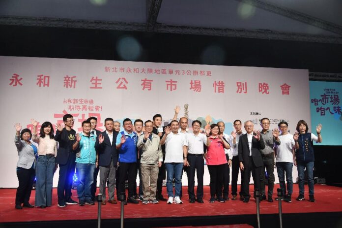 新北市永和大陳地區單元3公辦都更如期展開,都更案範圍內的新生公有市場,在新北住都中心及興建廠商皇翔建設的共同推動下,已順利拆除完畢,市長侯友宜今(28)日晚間前往市場原址參加惜別晚會,與大陳社區住戶及攤商共同見證過去、展望未來。