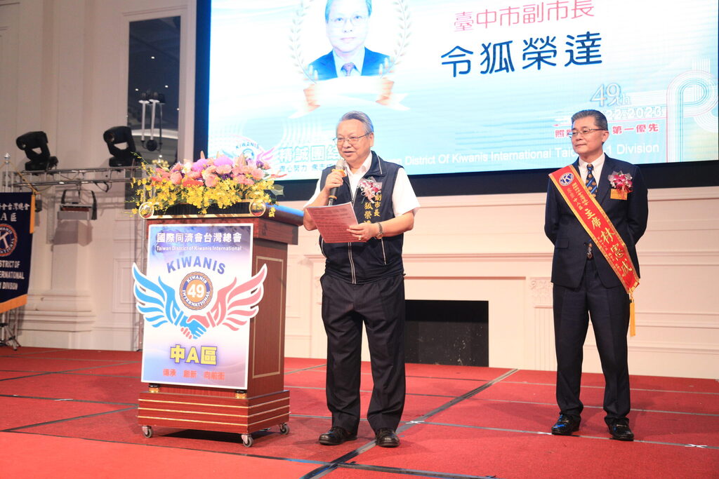「台灣的軟實力!」國際同濟會台灣總會中A區今(30)日舉辦第48-49屆區主席交接典禮。副市長令狐榮達代表市長盧秀燕到場祝賀,他表示,同濟會各分會一直都是社會服務的好夥伴,與市府攜手同心為社會付出、關懷弱勢族群,是台中之光,期待更多人受到這份熱情的感染,接力投入社會服務。