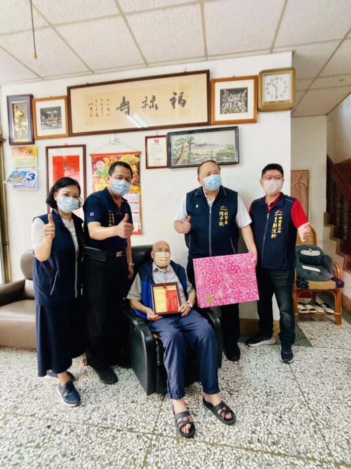 今天是一年一度的金秋重陽佳節前夕,副市長陳子敬今(3)日代表市長探訪關懷今年甫滿100歲的神岡區徐維樹爺爺,致贈市府重陽敬老禮金1萬元,表達對長者最崇高的敬意,並轉贈滿百歲敬老狀及衛生福利部金鎖片等賀禮,祝賀爺爺重陽節快樂,喜迎百歲,添壽更增福。