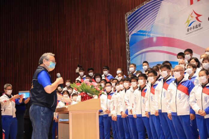 111年全民運動會將於10月8日至13日舉行,副市長令狐榮達今(3)日代表市長盧秀燕,在運動局長李昱叡的陪同下,為台中市代表隊授旗,並由世錦賽金牌選手何品莉代表接旗;此外,台中市體育總會執行秘書王益豐也代表台中市議會議長兼台中市體育總會理事長張清照,與市府共同致贈30萬元加菜金,為代表隊加油打氣。令狐副市長期勉台中隊不負眾望摘金奪冠,再創佳績。