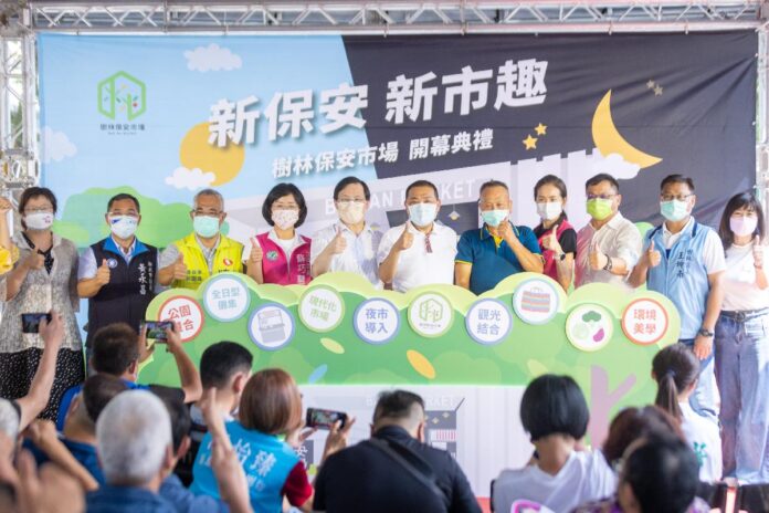 新北市積極推動市場重建與改建,4年來成功改造10座市場,第10座完工的樹林保安市場於今(4)日重新開幕。市長侯友宜出席見證首座結合早、夜市的示範型現代化攤集區盛大開市,感謝中央挹注經費,以及攤商配合市府政策,讓樹林的民眾能在舒適整潔的環境購物。