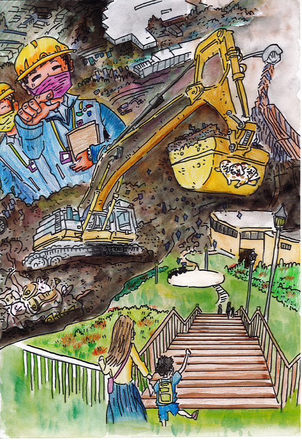 為反貪倡廉,弘揚蘊含「正德、利用、厚生」三位一體之傳統積極廉正精神,新北市今(111)年辦理「三一廉政在五股夏綠地」(Trintegrity Shining Wugu Charlotte)SDGs藝術競賽。城鄉局近日聘請兩位美術專業教師,並邀請國際透明組織會籍審查委員、臺灣藝術大學葛傳宇教授,與局內參與翻轉五股工作多年之資深主管,組成評審小組共同選拔優秀作品。