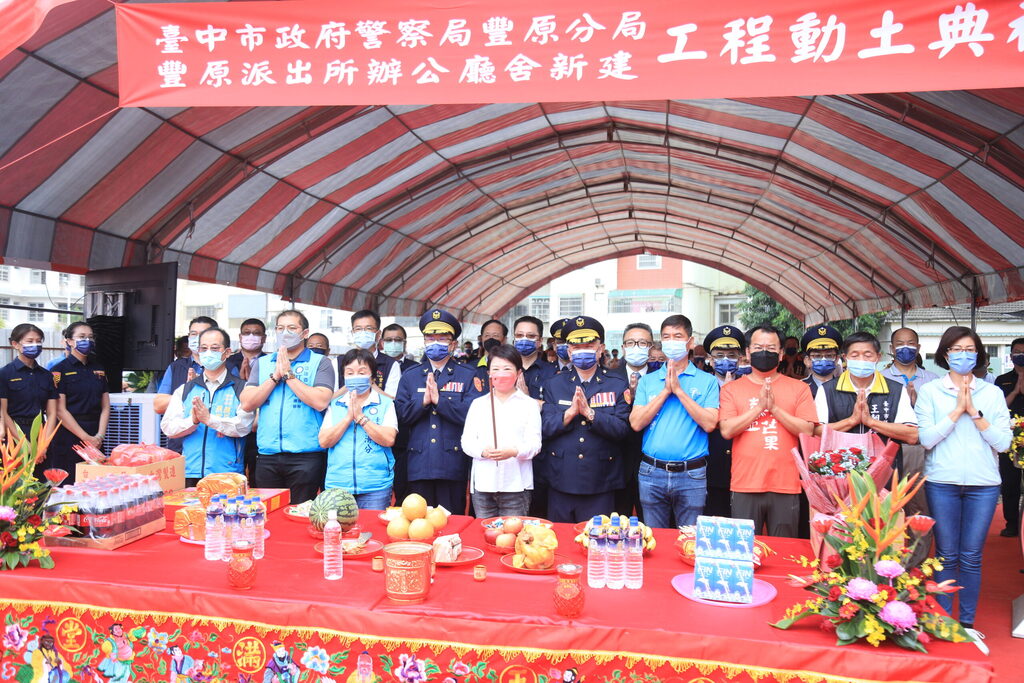 台中市政府警察局豐原分局豐原派出所辦公廳舍原與豐原地政事務所共用,因聯合辦公有人犯安全顧慮,且地理環境不明、空間狹小老舊不敷使用,因此市府編列6,598萬元興建地上三層新建物,預計113年完工。市長盧秀燕今(7)日主持動土典禮表示,提供警察同仁好的工作生活環境,才更能無後顧之憂守護城市治安,祈願新建工程施工順利、圓滿。