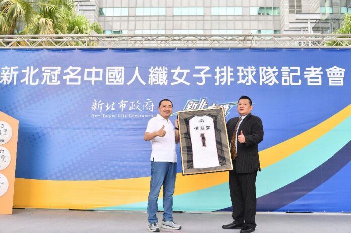 中國人造纖維股份有限公司董事長王貴賢會中致贈冠名球衣給新北市長侯友宜,象徵著新北、中纖攜手合作,董事長說,相信新北市與中纖冠名代表著女排擁有相當的競爭優勢,盼球員帶著市長和大家的期許在今年球賽中好好發揮、把球打好。