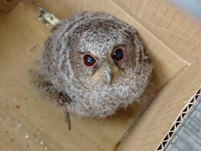 新北市政府動保處7月5日接獲貢寮區公所通報,民眾送來一隻不知名幼鳥,請求接回照護,轄區瑞芳動物之家隨即派人前去接回安置,經駐區獸醫王嚴緖檢傷發現,此為領角鴞幼鳥,並無發現有開放性受傷、骨折及落翅現象,推測是從巢中掉落地面,被民眾發現後轉交貢寮區公所,經瑞芳動物之家帶回餵養,經2個半月照顧,幼鳥已換羽完成,從淡灰色鳥羽換裝成咖啡色成鳥羽色,經聯絡送交人簡志興先生,一同於拾獲地點順利完成野放作業,助領角鴞寶寶順利回歸貢寮區大自然懷抱。