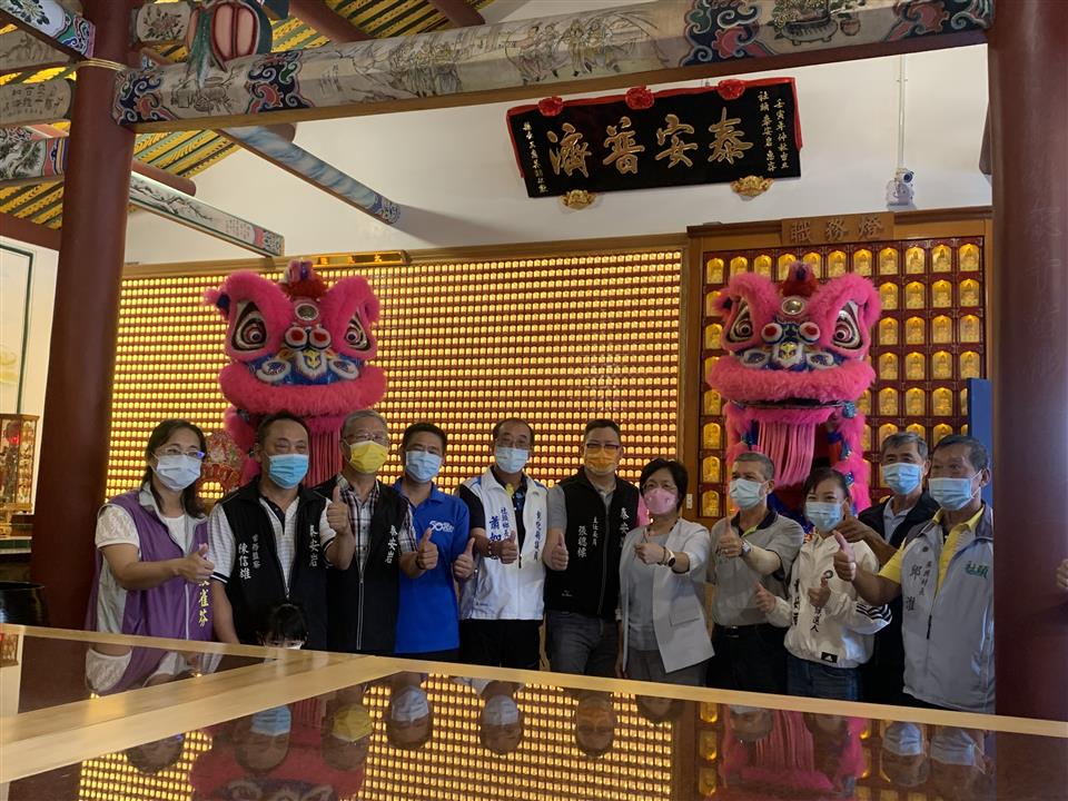 「彰化縣歷史建築社頭泰安岩」至今已有百年歷史,於去年6月修復工程竣工後,縣府賡續辦理彩繪調查規劃及施作皆已順利完成。今(8)日下午縣長王惠美等人與會團拜,並致贈宮廟「泰安普濟」牌匾一面,以資慶賀修復及彩繪施作工程皆順利完成,期許社頭泰安岩修復,能成為彰化縣文化資產修復亮點。