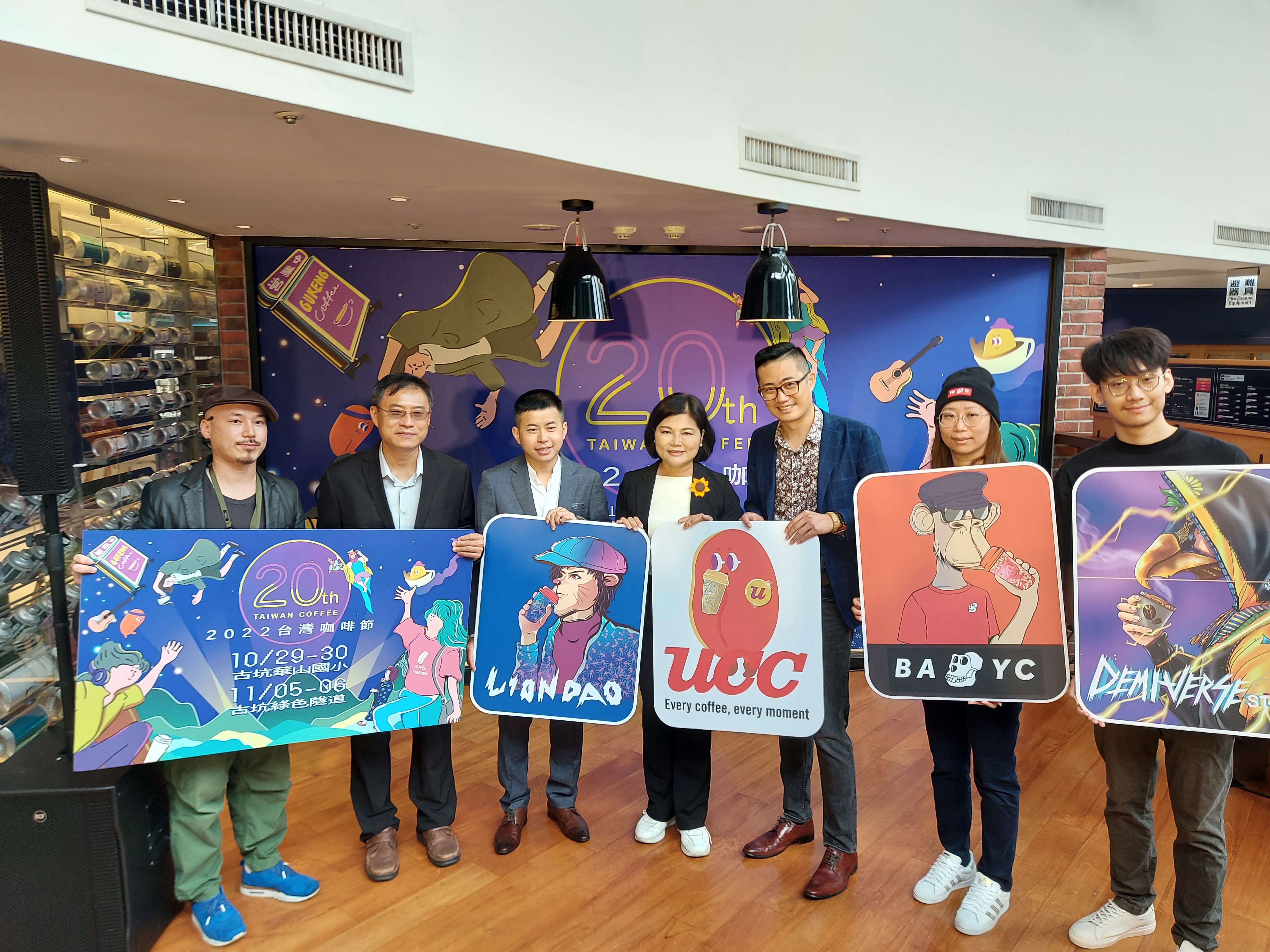 2022 台灣咖啡節今(12)日於 COFFEE LOVER’s PLANET 閃亮登場,古坑咖啡近年表現亮眼,已連續兩年獲得世界冠軍,今年更獲得國際知名咖啡品牌 UCC 青睞,不僅首次聯名「2022 台灣咖啡節」,推出由雲林咖啡豆烘焙製成,期間限定又限量的 20 週年禮盒,更攜手國內外知名NFT 如無聊猿(BAYC)、Demi-human 和 Lion DAO,一起肯定並支持台灣咖啡。