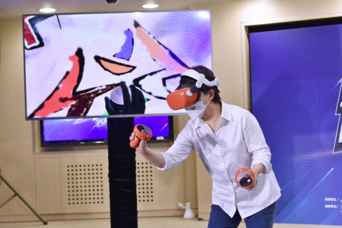 盧市長今日在運動局長李昱叡陪同下出席記者會,與代表台中參加全國運動會勇奪史上首金的冠軍隊,一同宣告第四屆活動將展開。她現場更操作《Kingspray塗鴉模擬器》,為府徽上色,感受虛擬實境技術魅力。「我覺得我有電競天份!」盧市長透露,她從小很少嘗試類似的塗鴉,今日一試就愛不釋手,她更打趣地說,她可被培植為不老電競選手,體驗過程讓現場歡笑聲不斷。