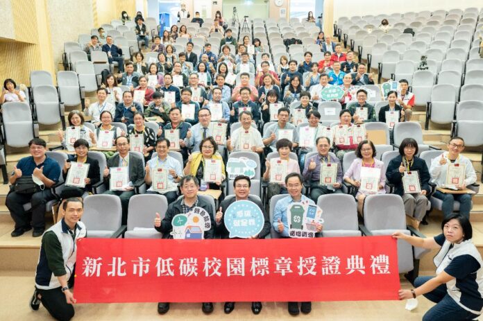 新北市環保局今(12)日舉辦「110及111年低碳校園標章授證典禮」,由副市長劉和然親自授證表揚72所學校,其中有19所學校獲得最高榮譽「金熊級」認證,期盼藉此肯定學校推動低碳永續校園環境的成果,並期勉各校強化辦理能源管理及零碳生活促進課程,持續打造各具特色的零碳校園,一起為新北達成淨零目標努力。
