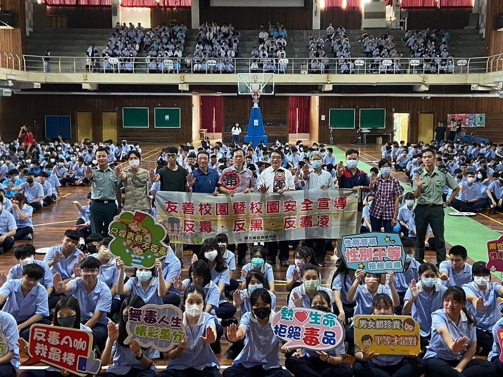 以南投高中為例,該校開學後即陸續辦理友善校園週各項宣導活動,並由校長傅國樑親自率領各處室主任宣示校園「反毒、反黑及反霸凌」決心,以及對於校園霸凌、毒品入侵絕對零容忍。傅校長表示,反霸凌及反毒品是目前校園安全重要工作之一,需要全體師生的力量共同來推行,營造友善、舒適及安全的學習環境。另針對反詐騙議題,該校主任教官劉曜彰也向師生宣導警政署資訊,目前有五種危害最高的網路詐欺態樣,包括假網路拍賣(購物)、投資詐欺、解除分期付款詐騙(ATM)、假愛情交友、假冒親友詐騙等,並用實際案例來宣導,建立學生正確觀念,提高學生警覺能力。
