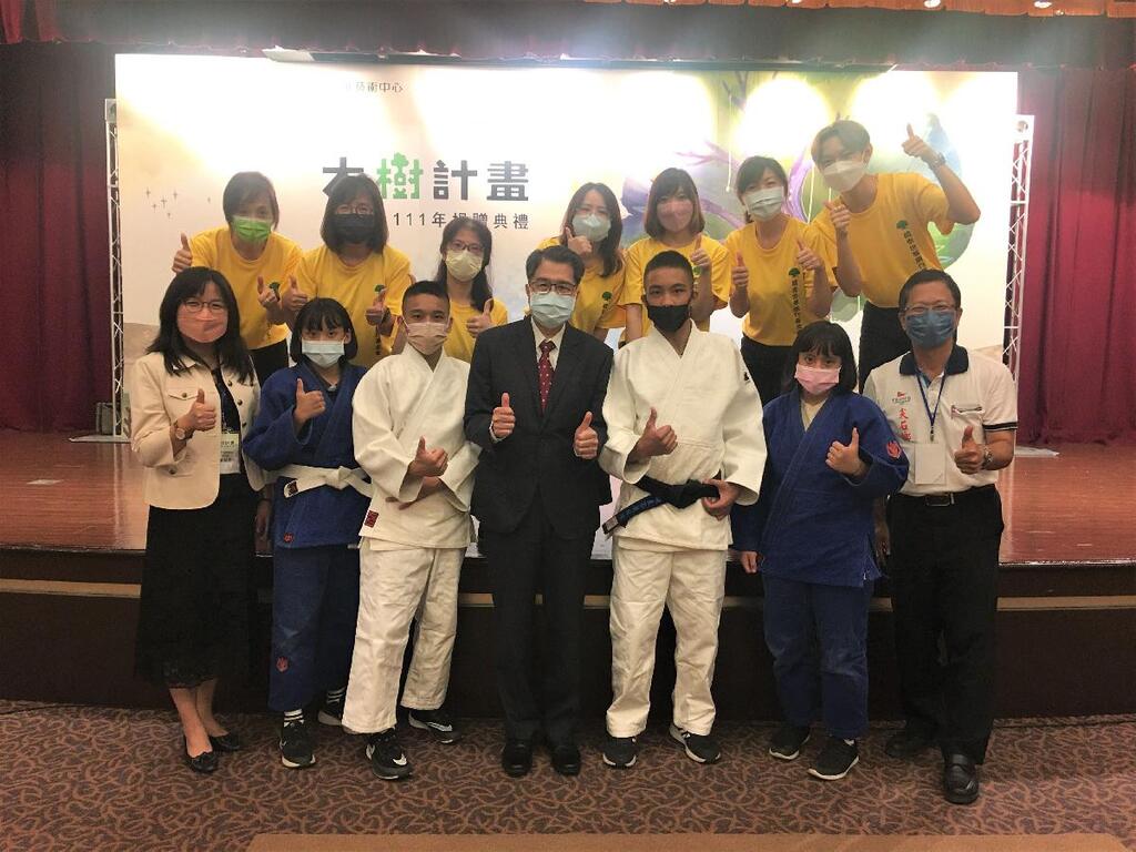 國泰世華銀行文教基金會「111年大樹計畫獎助學金」捐贈典禮,日前(10月12日下午2時)假國泰金融會議廳舉辦,新竹縣尖石國中柔道隊獲贈12萬6,000元獎助學金新購柔道服,縣政府教育局副局長蔡淑貞、尖石國中校長彭清宏親自到場回贈感謝狀,感謝國泰世華銀行文教基金會熱心助人的善舉。