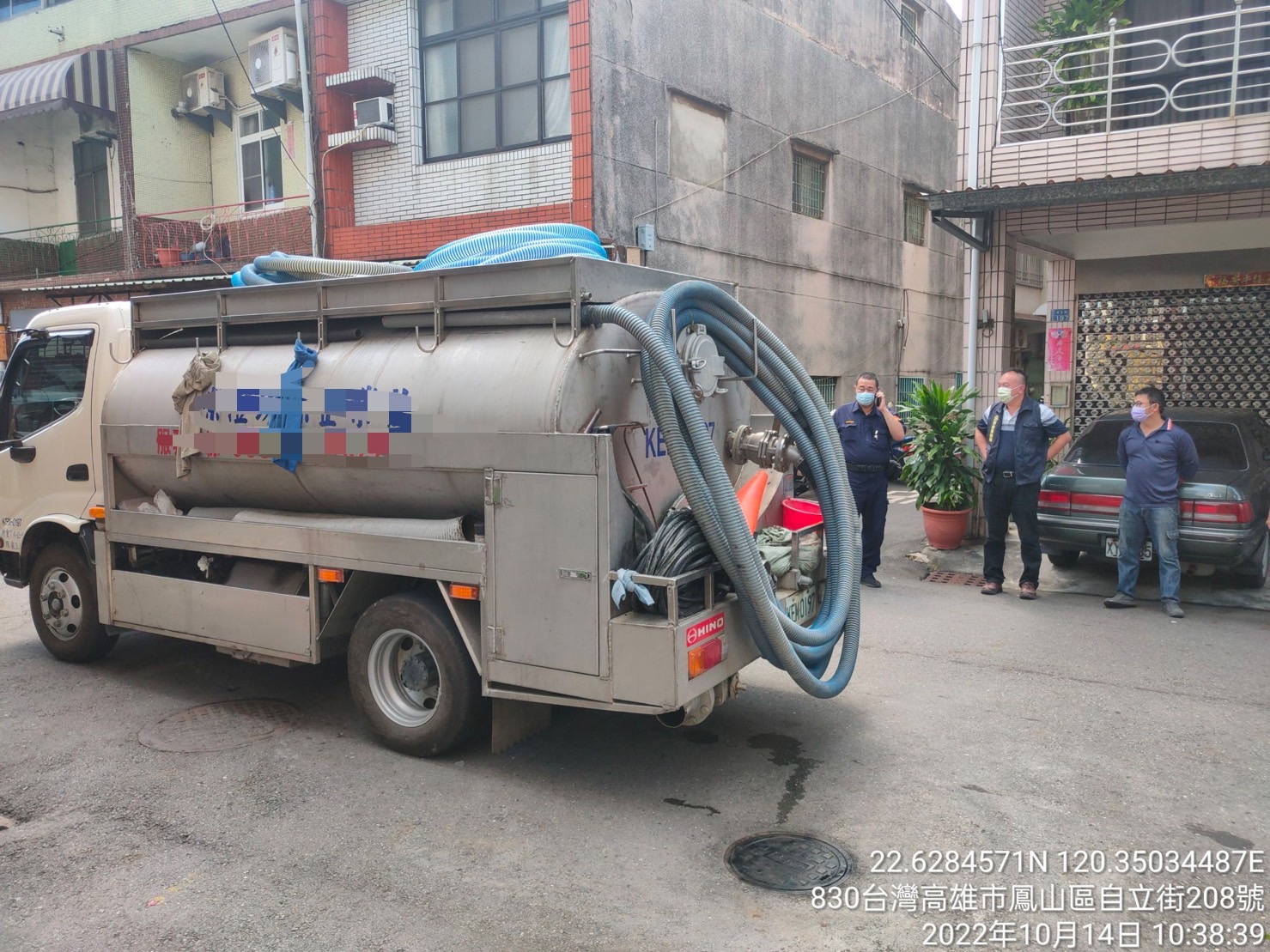 環保局近期屢次接獲民眾通報本市楠梓區及橋頭區之巷弄內有槽車偷倒水肥之行為,遂立即成立專案小組,透過陳情人提供之影像,確認行為人有利用水肥車及軟管傾倒水肥至道路旁污水下水道人孔內之違法行為,該水肥車車身標示榮O環保企業社,經掌握該水肥車停放位置與行車路徑後,跟蹤多日後於今(14)日發現該企業社於鳳山區自立街與中山西路172巷口前人孔再度有非法傾倒水肥行為,環保局立即上前取締,經查該名行為人未經許可非法收受家戶水肥,任意隨機傾倒於本市污水下水道人孔內,當場會同轄區派出所依廢棄物清理法第9條第2項規定查扣該輛水肥車,並將依違反同法第41條及46條規定移送偵辦,同時持續追查是否仍有收受其他事業單位廢棄物,一併依違反廢清法相關規定辦理。