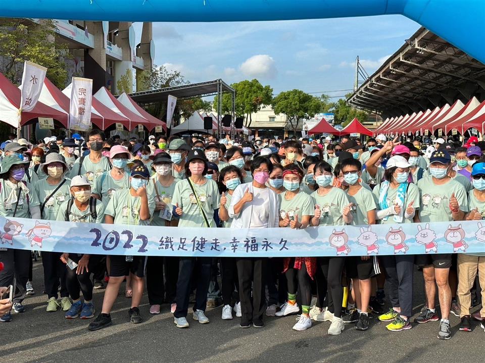 2022彰化縣政府馬拉松嘉年華第二場,彰化社頭2022織足健走,幸福永久活動於今(15) 日在織足藏樂館熱鬧展開。縣長王惠美、經濟部工業局主秘周崇斌與各級民代前往現場為選手加油打氣,並由王縣長等為活動起跑鳴槍,這次約有500名愛好健康活動民眾熱情參與,健走路線來回5公里,由「織足藏樂館」出發,目的地為富有三百年歷史社頭月眉池劉氏古厝,跑友能享受沿途大自然遼闊的視野及優美的景致,期許縣民透過健走活動,培養運動習慣,促進身體健康。