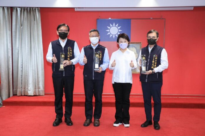 台中市政府重視城市景觀美學及生活風格塑造,建設局今年以黎新公園(大西瓜公園)榮獲高雄市建築經營協會「2022建築園冶獎」殊榮!今(18)日市政會議中,建設局長陳大田獻獎給市長盧秀燕,與市民分享榮耀。建設局表示,台中推動美樂地公園已達131座,不僅汰舊翻新也闢建新據點,鋪面採用不同材質,也加入多元類型遊具,將持續努力,朝向一區一特色目標前進。