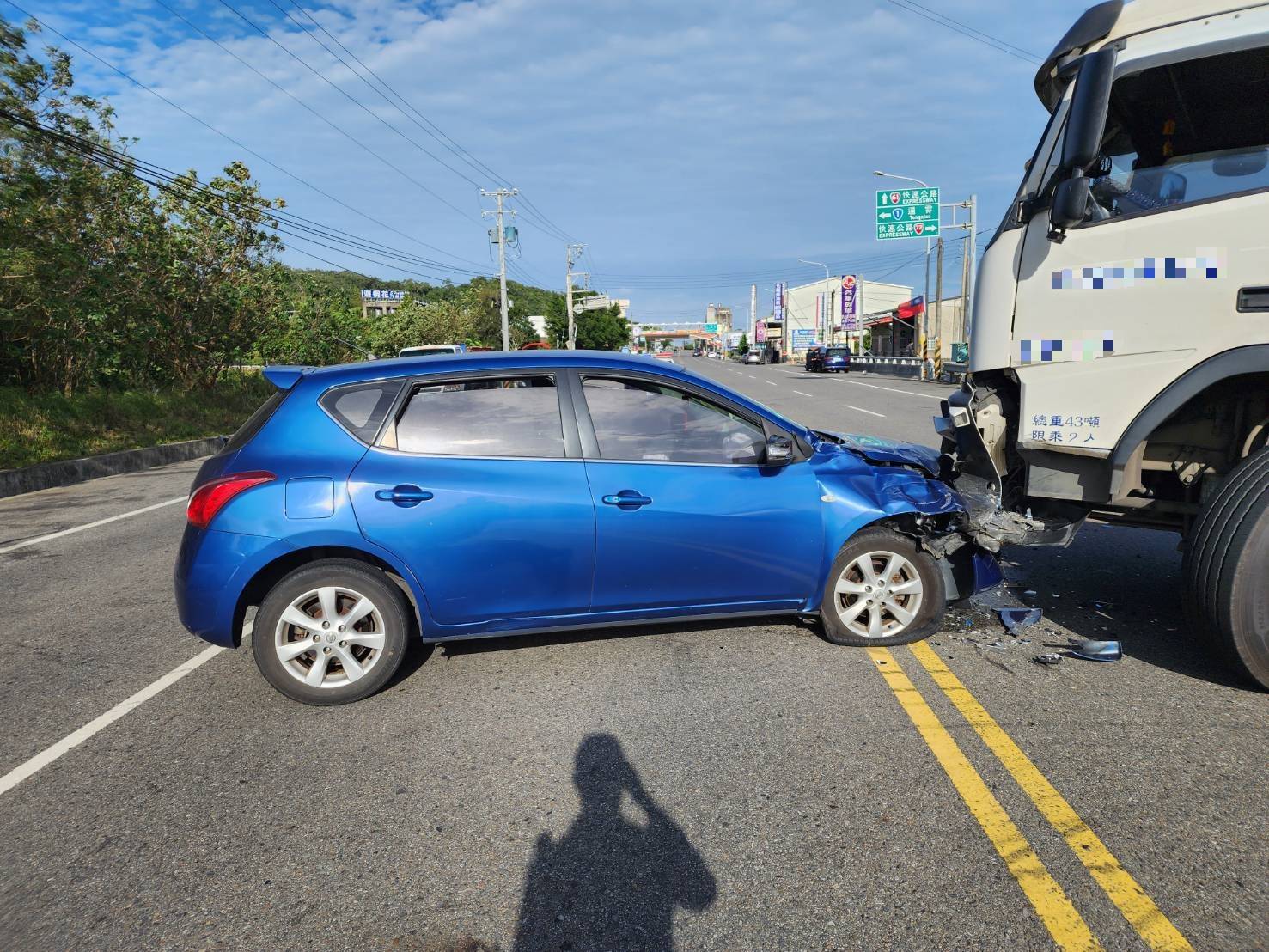 苗栗縣警察局竹南分局聯港派出所警員劉軒豪、吳文斌於111年10月19日7時45許接獲報案稱,後龍鎮臺6線3.5公里處發生一起油罐車與自小客車擦撞之交通事故,員警立即趕赴現場處理。