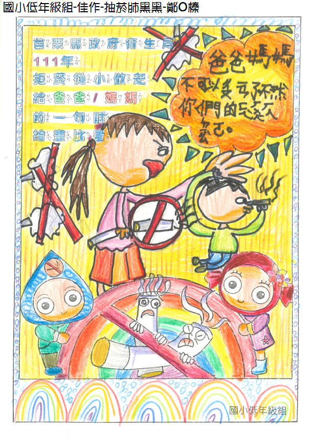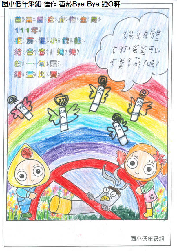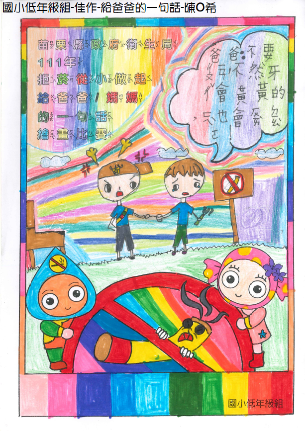 111年「拒菸從小做起-給爸爸/媽媽的一句話繪畫比賽」得獎名單出爐啦!!