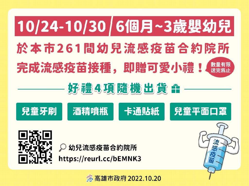 南部新聞高雄市【衛生局】10/24-10/30 6個月~3歲嬰幼兒於本市幼兒流感疫苗合約院所完成接種送可愛