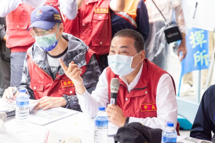 尼莎颱風本(10)月16日帶來強降雨,造成伯爵山莊後方坍方,侯友宜在第一時間趕赴現場勘災,指示各局處及區公所進行7項搶險及復原作業,包括:邊坡防護及導水搶修工程、復電復水復瓦斯、環境清理、住戶安置、屋損情形、邊坡監測機制建立與黃紅線臨時停車等;16日完成58戶145人的疏散收容工作。