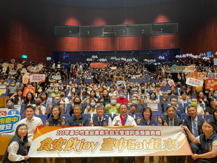 台中市政府衛生局為維護消費者食品安全,鼓勵業者報名參加衛生評核,由衛生局聘請專家學者至店家輔導,針對優良業者分級頒發「特優」、「優」、「良」標示,今年共有「特優」98家、「優級」160家、「良級」151家,共409家優良食品業者入選。今(21)日在台灣大道市政大樓4樓集會堂舉辦「食安饗宴 榮耀再現」111年台中市食品業衛生自主管理評核授證典禮,衛生局長曾梓展出席頒獎給獲獎業者,活動也邀請受獎的知名品牌於川堂設攤展示。