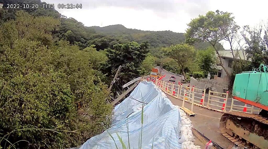 新北市汐止區汐萬路3段306號前(北29區道6.6公里處)17日晚間發生道路掏空,接獲通報養工處立即封閉道路進場搶災,緊急採用帆布覆蓋,防止雨水再滲入,並且搶搶通內側一車道,讓現場可以單側雙向通行。養工處強調,目前全力進行復建作業,預計在今年底前可以全線開放通車。