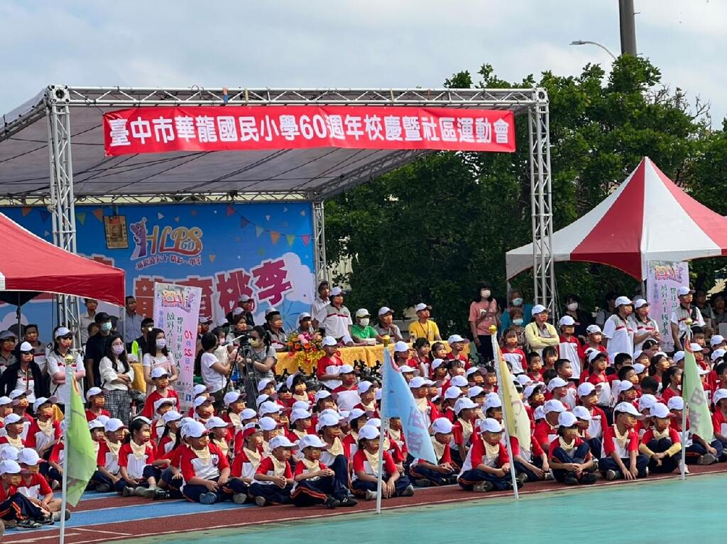 台中市大甲區華龍國小創校60週年,今(22)日辦理創校六十週年校慶暨社區運動會,學校安排各項精湛活動,與社區共享成果與歡樂,教育局專門委員陳雅新代表教育局長楊振昇與全校師生共同吹蠟燭切蛋糕、施放氣球,歡慶華龍國小一甲子生日。為慶祝創校60歲生日,學校師生不只準備三層大蛋糕,也辦理師生靜態成果展與智創科學闖關活動,熱鬧滾滾。