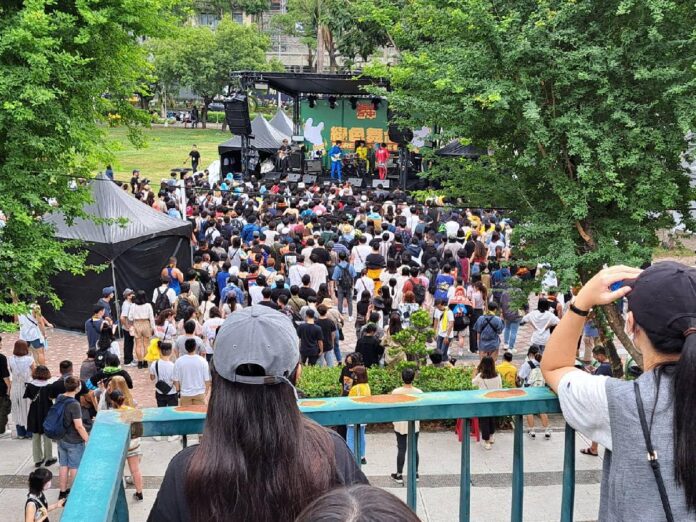 搖滾台中15週年重返實體熱力演出,今(22)、明兩日在文心森林公園暨圓滿戶外劇場登場,首日超過30個樂團開唱,主舞台「能量舞台」由各大音樂祭常客「海豚刑警」、「老破麻」等樂團開場,晚間還有金曲樂團「血肉果汁機」、金曲歌后「魏如萱」壓軸,讓現場樂迷High翻天。市府新聞局長鄭照新與立法委員江啟臣下午也到場與民眾同樂,預估活動首日將超過10萬人次樂迷湧入參加!