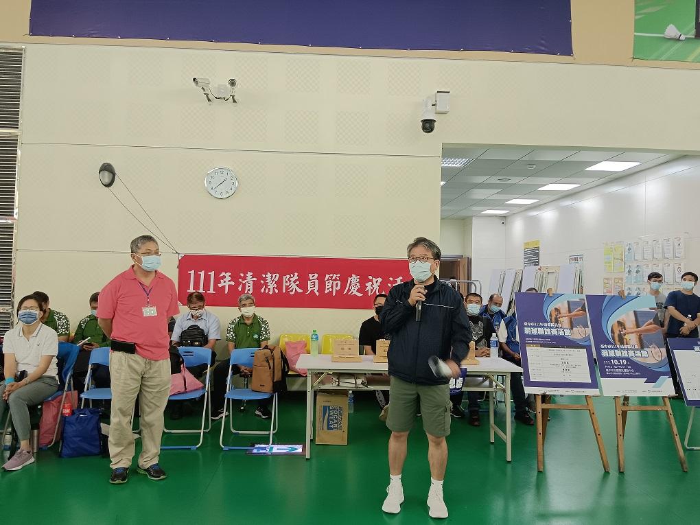 由行政院環保署指導、台中市政府環保局舉辦的「111年清潔隊員節羽球聯誼賽」活動,日前於北區國民運動中心羽球館熱情登場,27區清潔隊皆派出精英選手參賽,行政院環境保護署督察總隊中區環境管理中心隊長蘇聖傑到場致詞,環保局長陳宏益開球,為清潔隊員選手們加油打氣,激勵環保團隊的高昂士氣。
