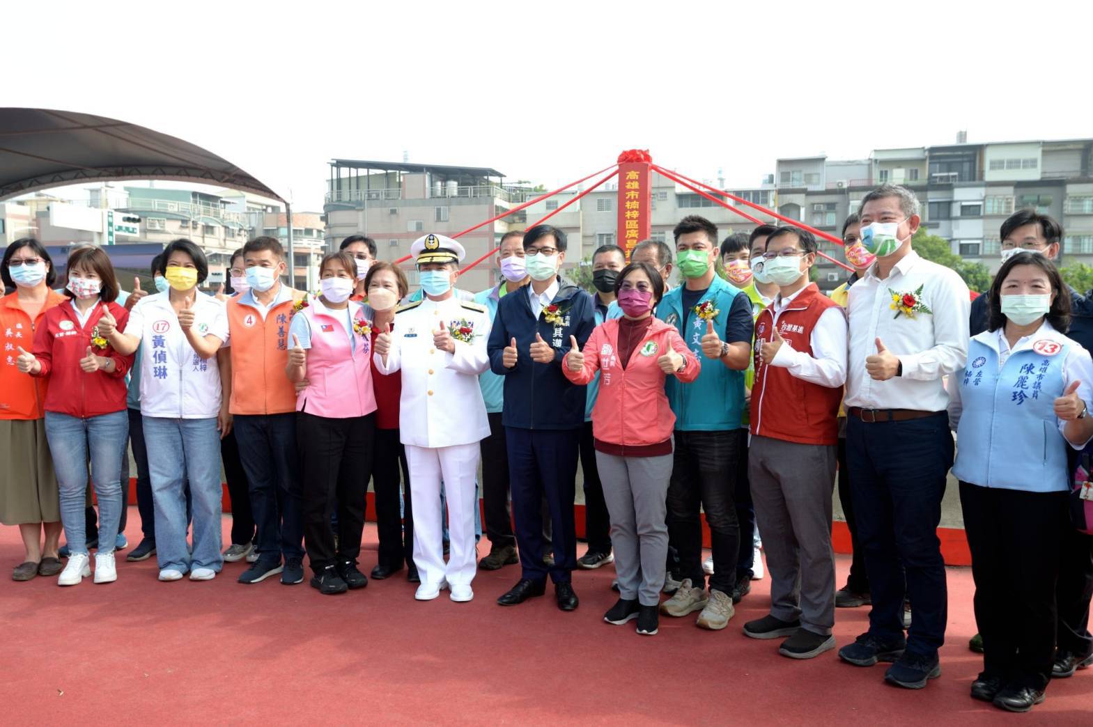 為解決右昌地區積淹水問題,高雄市市長陳其邁今(23)日主持楠梓區廣昌排水滯洪池工程動土典禮,經濟部水利署第六河川局謝明昌局長、國防部黃中將、劉世芳立委及左楠區陳麗珍議員、李雅慧議員、李雅芬議員、李柏毅議員、陳善慧議員、黃文志議員、李眉蓁議員團隊及陳玫娟議員團隊前來共襄盛舉,典禮中市長特別感謝劉世芳立法委員積極協助,向經濟部水利署爭取補助款9,000萬,也感謝國防部展現軍愛民的無償提供土地,讓本計畫得以順利推動。並要求水利局加速趕辦工程,希望能在112年12月底順利完工啟用。