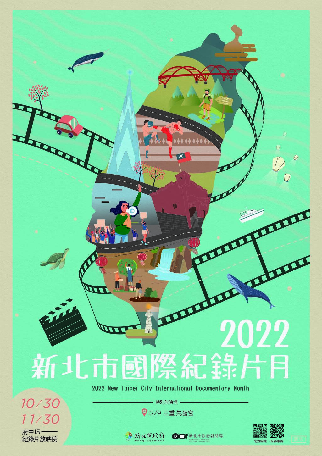 由新北市政府新聞局主辦的「2022新北市國際紀錄片月」主視覺宣傳摺頁今日亮相,活動將在10月30日起於府中15紀錄片放映院展開,今年規劃三大主題單元,「國內院線精選—台灣的故事」、「國際紀錄片大賞—藝術家的故事」以及「2022新北市紀錄片獎優選影片」,一共26部精選片單輪番上陣,歡迎大家一起來觀賞。