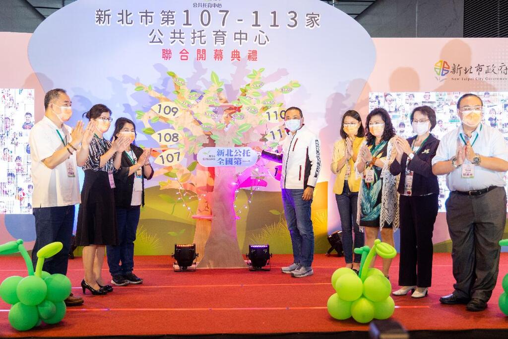 侯友宜表示,市府持續善用現有場館資源,推動平價優質的公共托育,感謝所有辛勞付出的工作夥伴及有愛心的民間企業,持續為孩子營造健康安全的成長環境。目前新北市公托總收托量為5,772名,為全國第一,甚至遠超其餘五都總和,今日第107家至113家公托中心同時啟用,期望年底能達成120家的目標,打造友善年輕人生養的環境。