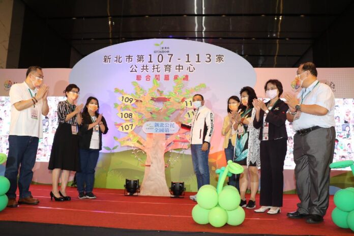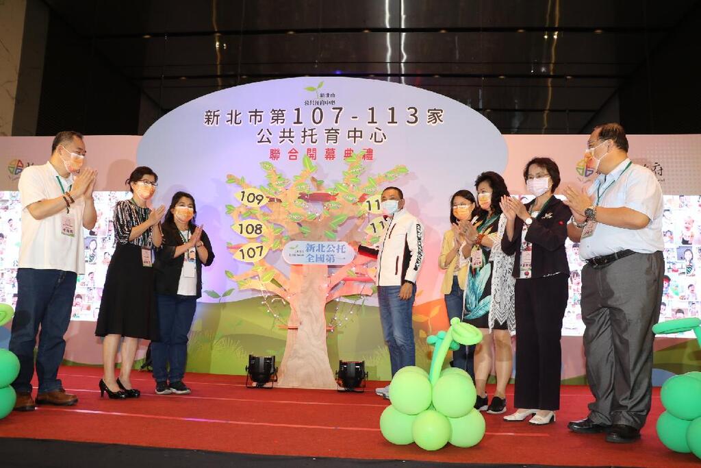 新北市25日在由華固建設響應工業區立體化方案回饋公益空間所設立的新莊建國公共托育中心,舉辦第107-113家公托聯合啟用。侯友宜市長表示,工業區立體化和公托翻倍成長是他4年前競選的重大政策,於今檢視均有陸續完成,年底前會再啟用中和自強等7家,以4年時間完成前任市長8年設立60家的目標,使新北市公托家數達到120家。他特別感謝社會局及市府團隊和所有產、官、學夥伴力拼,減輕年輕父母養兒育女的負擔。