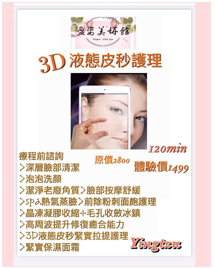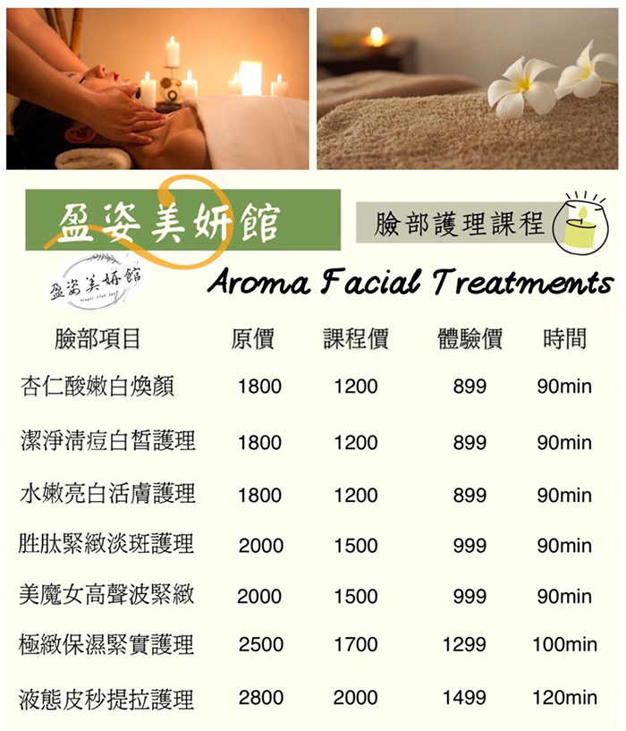針對痘痘肌、敏感肌、粉刺調理、肉芽、皮膚暗沉、缺水、乾癢等問題,有淡斑、保濕、控油、去角質、亮白的需求,來到盈姿,所有問題肌膚迎刃而解,盈姿專業技法,頂級保養品課程、專業儀器設備,三管齊下,讓無數女性輕鬆找回臉部肌膚光采。