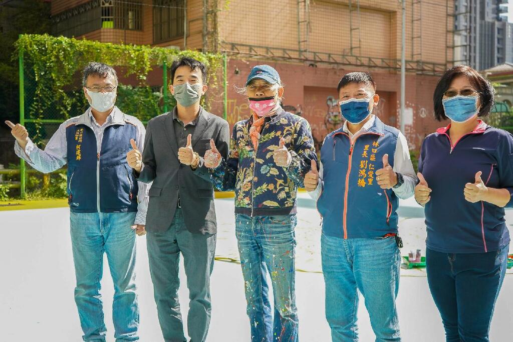 妙手一揮揮出全新色彩!林口仁愛籃球場前陣子進行球場改善完工後,在地知名國際品牌首席設計師彭雄渾老師也進場開始進行彩繪,再經過討論後將彩繪位置選定在籃球場中央跳球區及2處禁區,且採現場即興創作方式,球面上的繽紛色彩讓路過民眾直呼太特別了!十分期待籃球場開放使用。