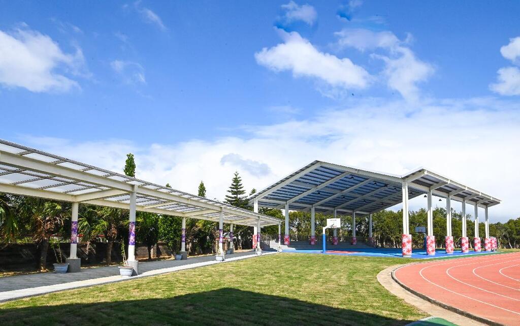 新屋永安國中「海客風情角」風雨球場落成,融入客家意象為師生打造防風避雨的運動場
